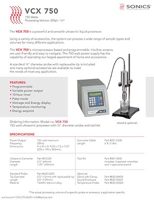 SONICS超聲波細(xì)胞粉碎機(jī) VC750,可安全處理各種有機(jī)和無(wú)機(jī)材料,從250微升升至1升*。典型應(yīng)用包括納米技術(shù)(生產(chǎn)納米顆粒材料和石墨烯分散體),細(xì)胞裂解,樣品制備,均質(zhì)化,ChIP測(cè)定,乳化,解聚和解聚,以及聲化學(xué)液體處理領(lǐng)域的應(yīng)用。