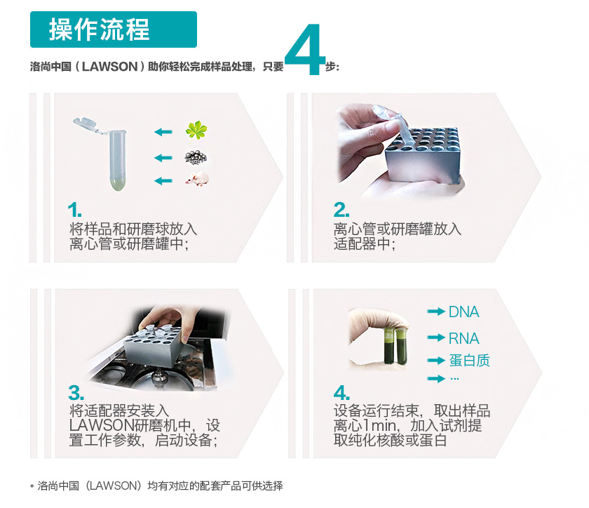 洛尚中國(LAWSON)LAWSON-24 高通量組織研磨儀是一種特殊的、快速的、高效率的、多試管的一致系統。它能將任何來源(包括土壤、植物和動物的組織/器官、細菌、酵母、真菌、孢子、古生物標本等)的原始DNA、RNA和蛋白質進行提取和純化。
