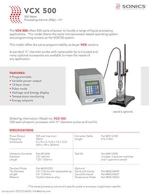SONICS超聲波細胞破碎儀 VCX500,可安全處理各種有機和無機材料,從250微升到1升*。典型應(yīng)用包括納米技術(shù)(納米顆粒材料和石墨烯分散體的生產(chǎn))、細胞裂解、樣品制備、均質(zhì)、ChIP分析、乳化、解聚和解聚,以及在超聲化學(xué)液體處理領(lǐng)域的應(yīng)用。