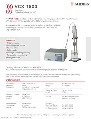 SONICS超聲波分散器 VCX1500,1500W超聲波處理器和設(shè)備,可以批量安裝多達(dá)20升的有機(jī)和無(wú)機(jī)材料。典型應(yīng)用包括工業(yè)混合(包括納米材料的大規(guī)模加工)和工業(yè)加工(包括乳化,脫氣和大規(guī)模分散體系)。